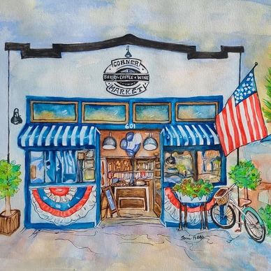 This custom painting of H.B. Corner Market was created by Toni Haas, an Artist, for Suzanne, the owner, to celebrate her community impact and the market’s legacy as a local landmark.